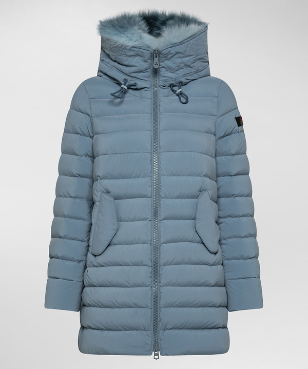 Lange Daunenjacke mit Pelz im Farbton